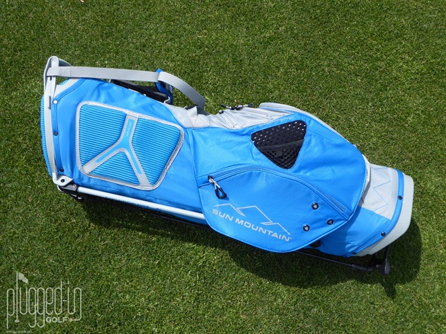 Transferring all my clubs and accessories to the new 2019 Sun Mountain 4.5 LS 14-Manner, I was able to examine every aspect of the pocketbook against the previous model and noted only four differences. The top is well-nigh a ¼" narrower with slightly unlike shaping, and its handle is notably wider. The hip and shoulder padding has a new channel construction with wonderful feel. Finally, in that location'due south ane extra webbing loop adjacent to the plastic D ring – a simple but welcome addition for towels, grade badges, or a homemade glove lasso.